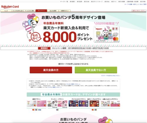 楽天カードが入会特典を8,000ポイントにUPするキャンペーンをしているようだ。2018/8/27までらしい。 以前ハピタスと合わせて 23,500ポイントを獲得した経験から言うと、実際かなりトクだとは思う。 min117.hatenablog.com 楽天が入会特典を8,000にまで上げ…