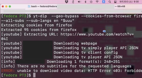 ランキング参加中プログラミング ハピタス登録で1,000円分になるURL yt-dlpがメッチャ遅くなってる とりあえず効いた対処方法 yt-dlp -f 18 URL のようにフォーマット指定してDLすると爆速に戻った。 -f 18のところはフォーマット番号なので、 yt-dlp -F URL…